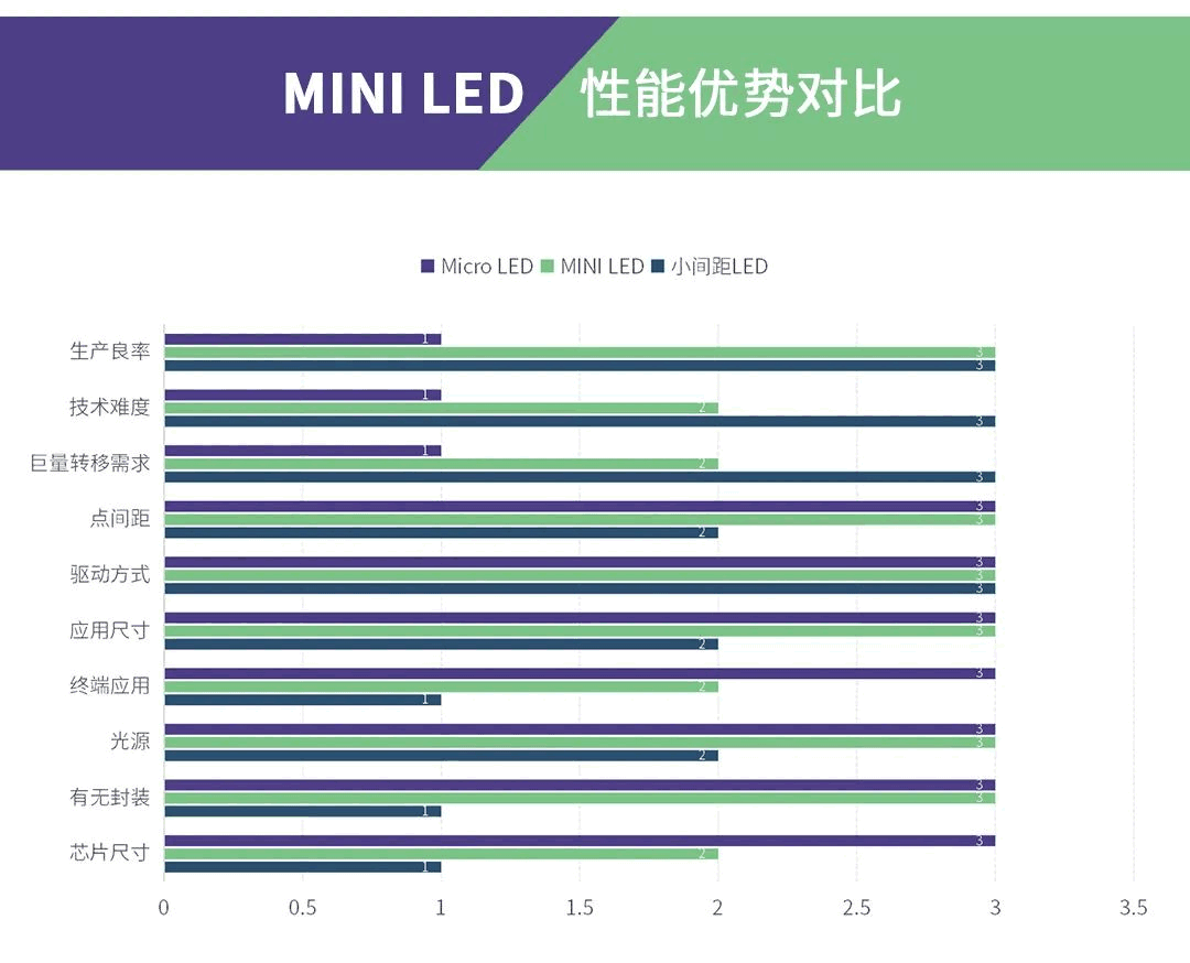 在同类型产品的性能优势对比中,瑞丰MINI LED相对其他显示技术更为节能、成本更低。